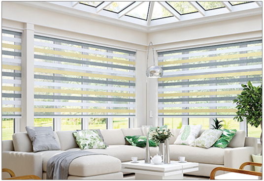 Liven up your windows with Vision blinds. Controlling the light while maintaining the view, create an impact with Vision, a striking new window blind for the modern home. Vision is a stylish fabric that gently filters and softens daylight whilst also offering you the option of a privacy blind. The Vision fabric collection features beautiful metallic finishes, pretty sheer fabrics, natural wood woven effects and a fashionable selection of muted tones. Combined with a number of headrail options, Vision blinds are sure to complement any interior design scheme.